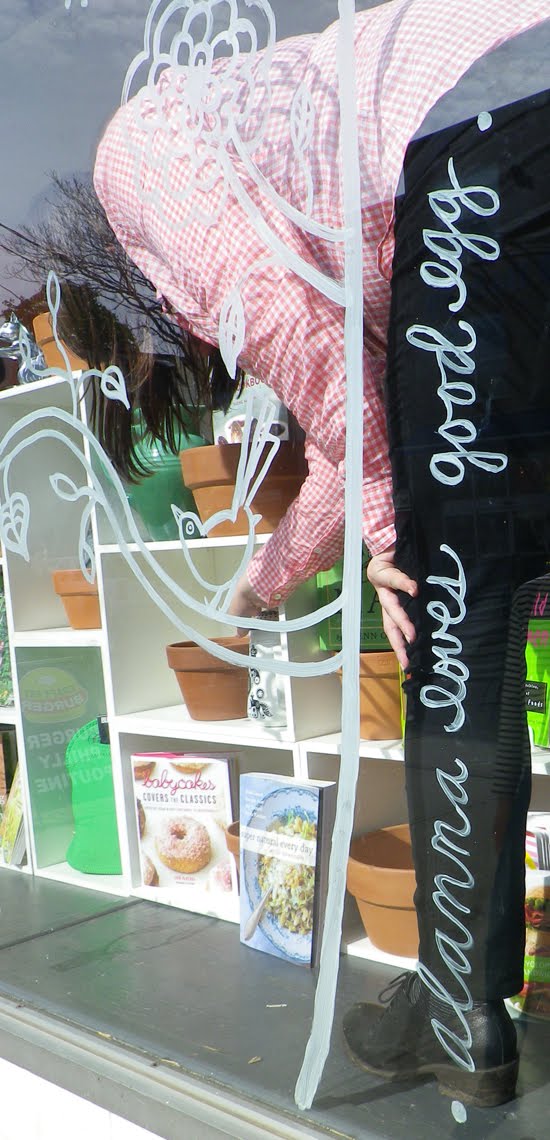 Today I painted a "Garden of Earthly Delights' mural in the window of good egg